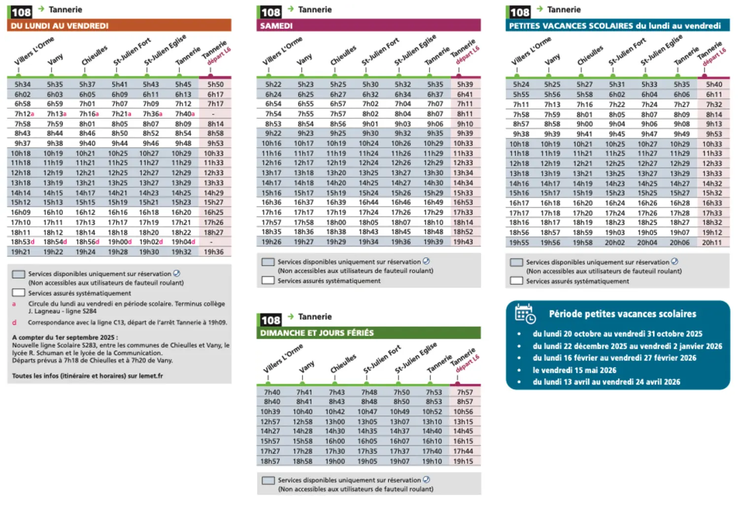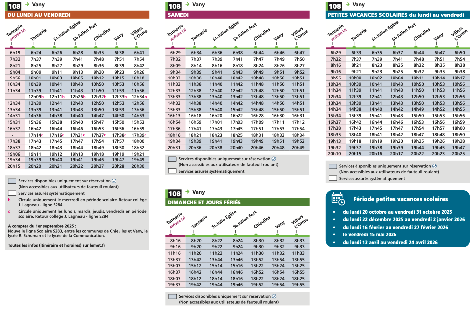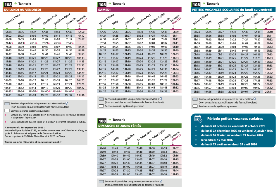 Retrouvez tous les horaires et le tracé de la ligne 108 sur le site du Met' ici